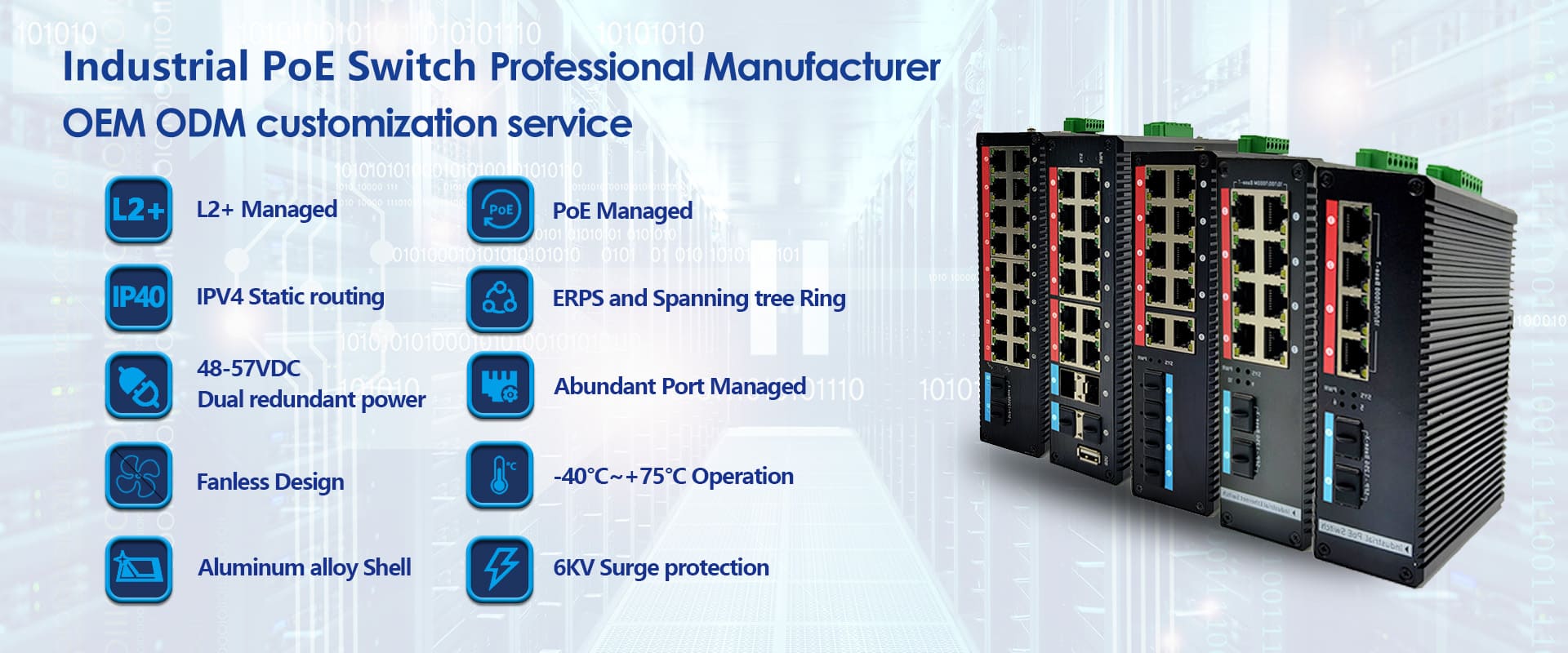 Redundant V-Ring Gigabit Ethernet Looped Network 2.5G Industrial POE Switch Solutions
