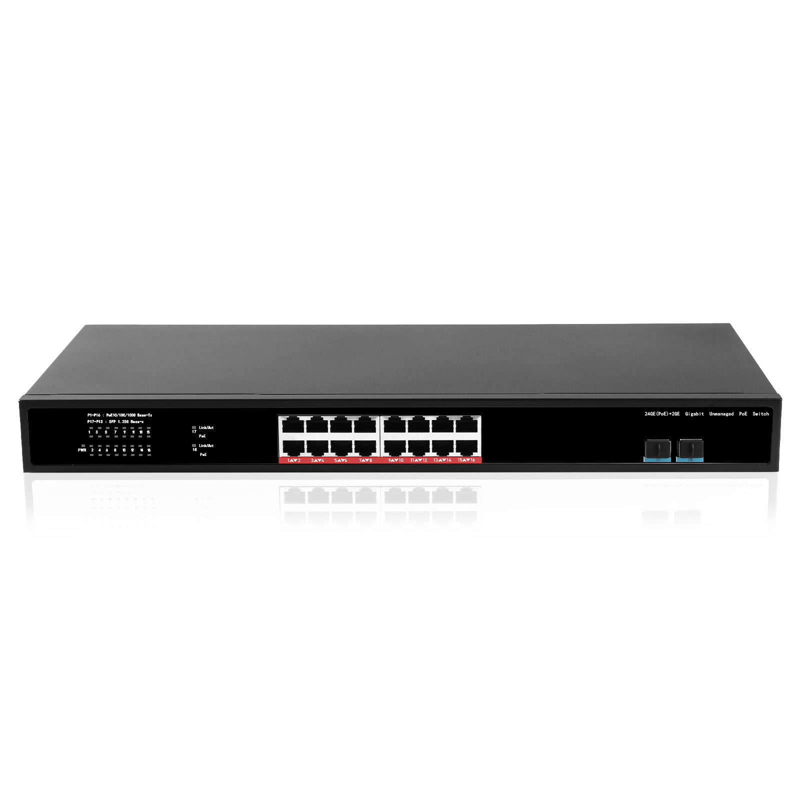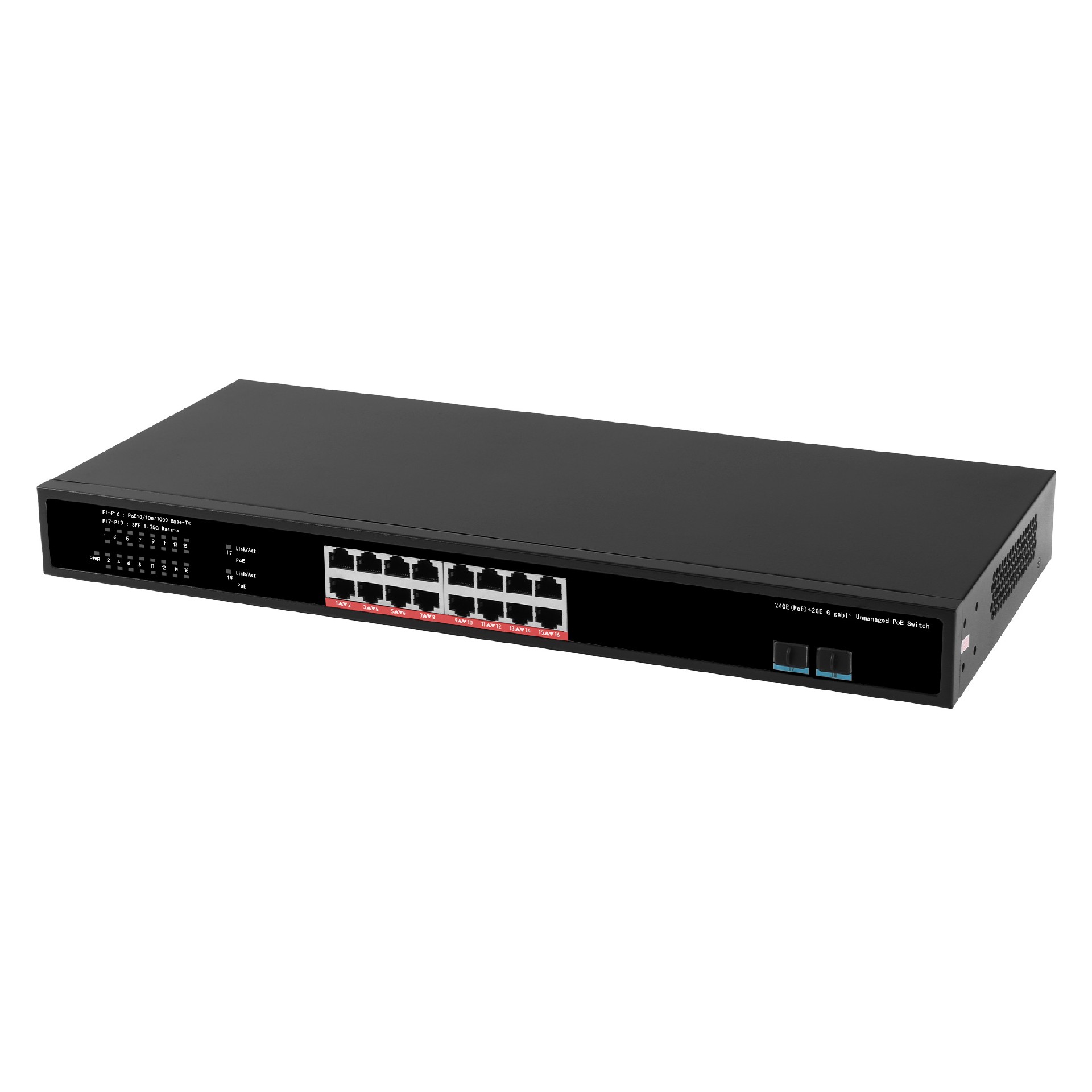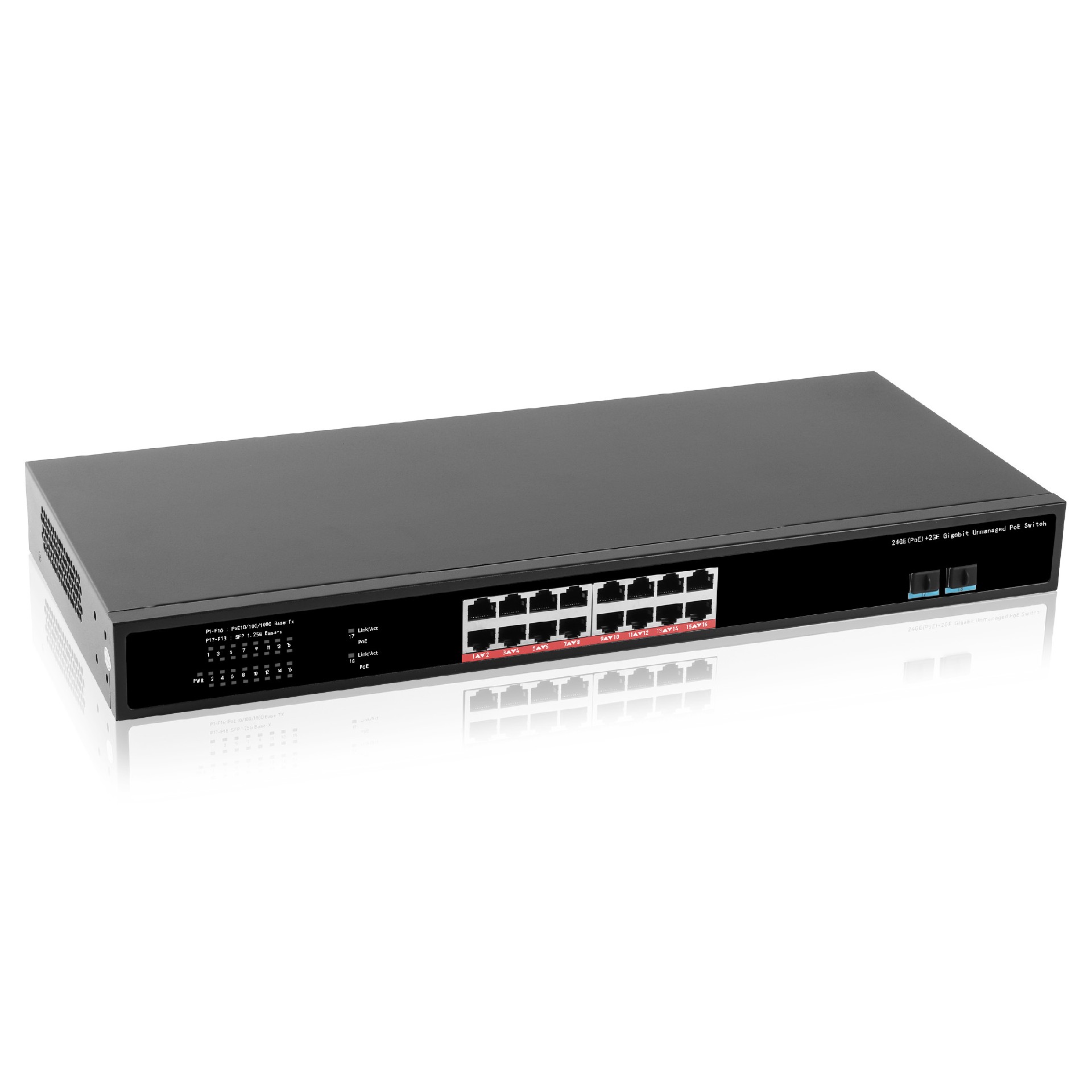 S316GP-2GF | 非网管16个10/100/1000M 网口+ 2个千兆SFP光口上联PoE交换机,1-16口支持IEEE 802.3af/at国际标准。内置电源,支持1U机架式安装 | 250W |