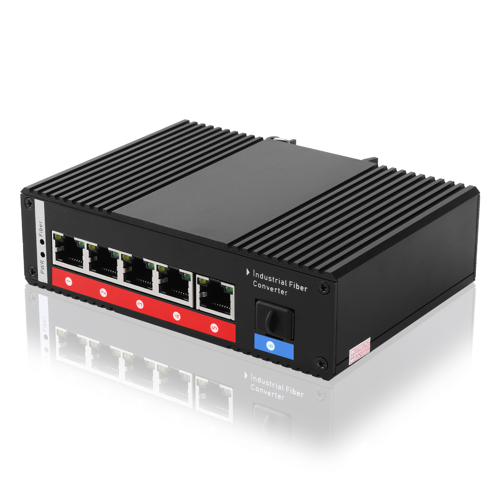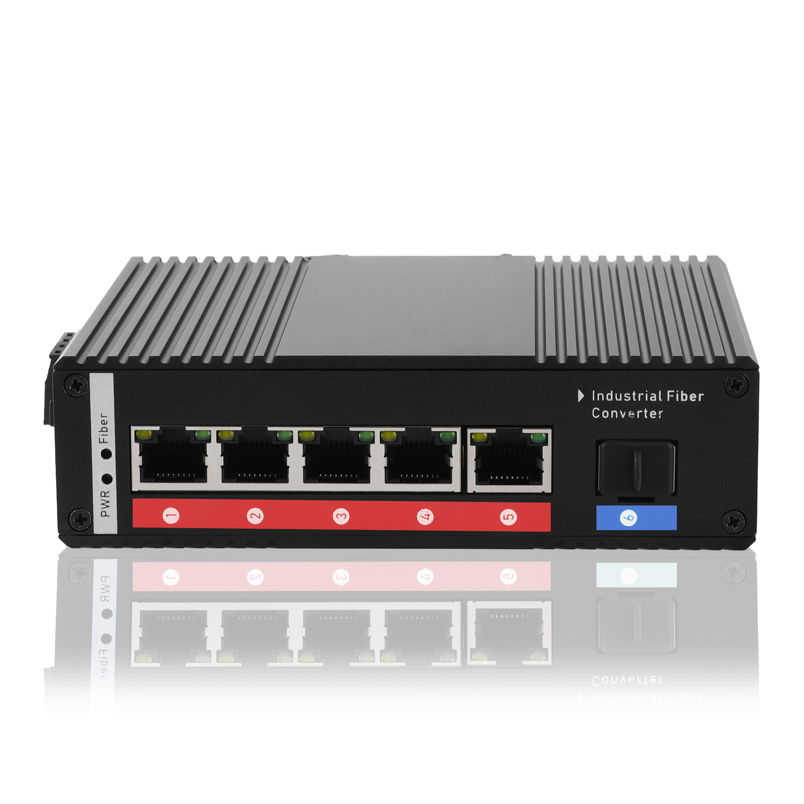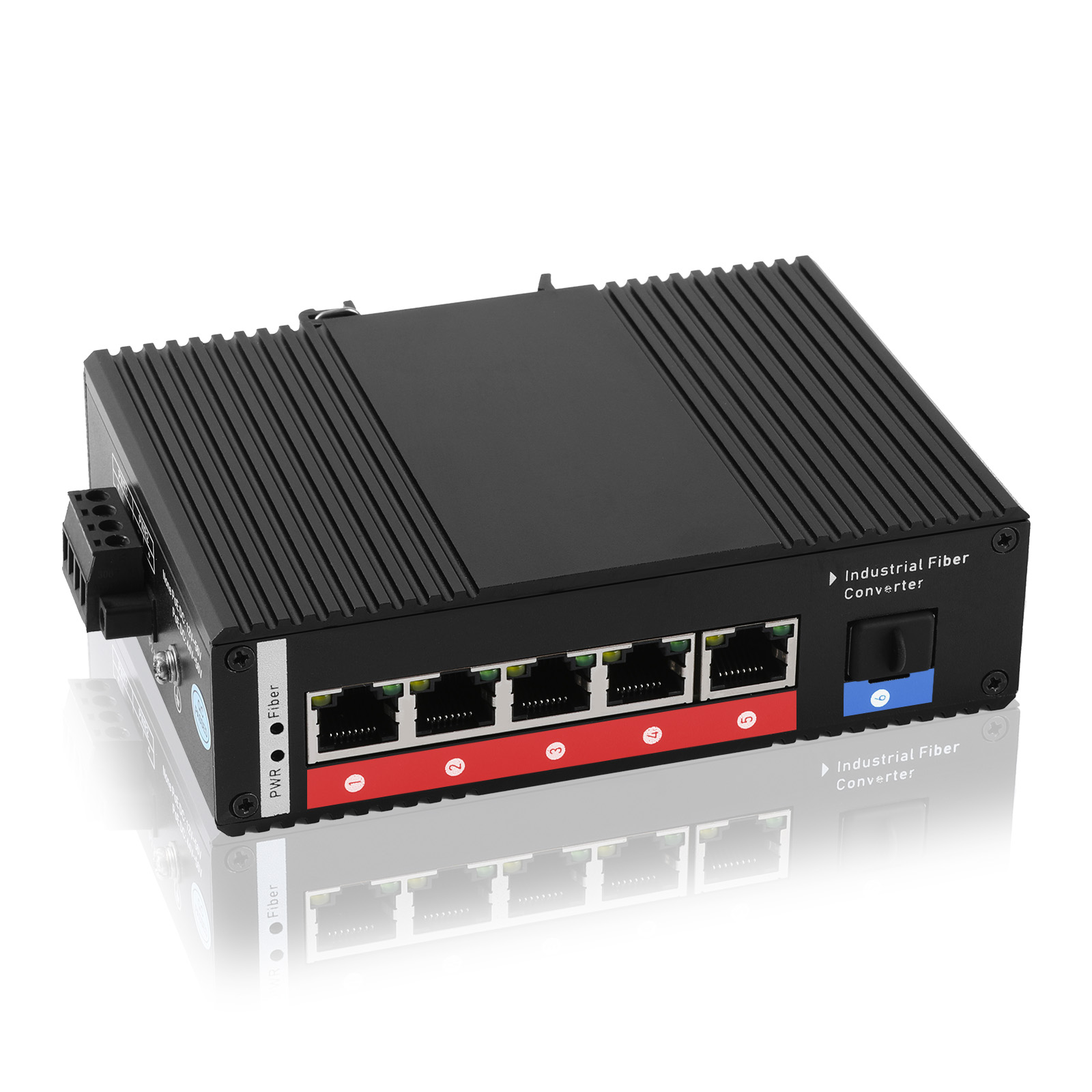 IS304GP-1G1SF交换机均采用铝合金型材外壳,超强散热性能,保障其在户外高温环境下能长时间稳定运行,业务端口均支持6KV静电雷击保护,冗余双电源输入接口,导轨式安装,非网管机型,即插即用,无需配置,使用简单方便;